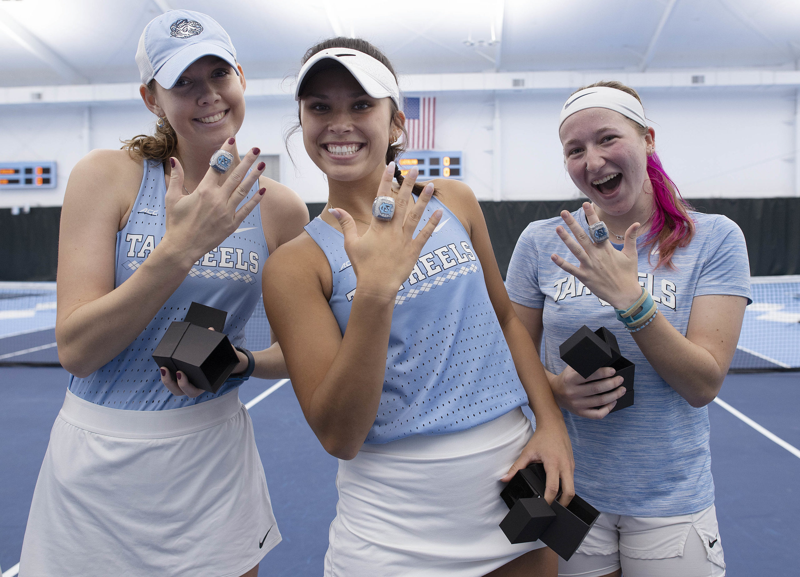 I recently capped off my individual collegiate career with an NCAA singles national championship at those same courts where we won our team title during my freshman year. That was such a special, full-circle moment that I think encapsulated my growth on this team. Coming back to Chapel Hill to see the bell tower lit blue for me was the biggest honor. My accomplishments have always been so much more meaningful when I get to do them for and alongside people I care about. This was such a great reminder of the larger organization and legacy of Carolina Athletics that I am grateful to be a small part of!
